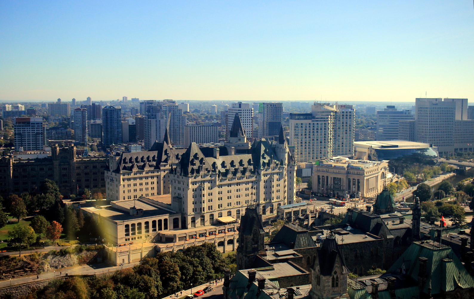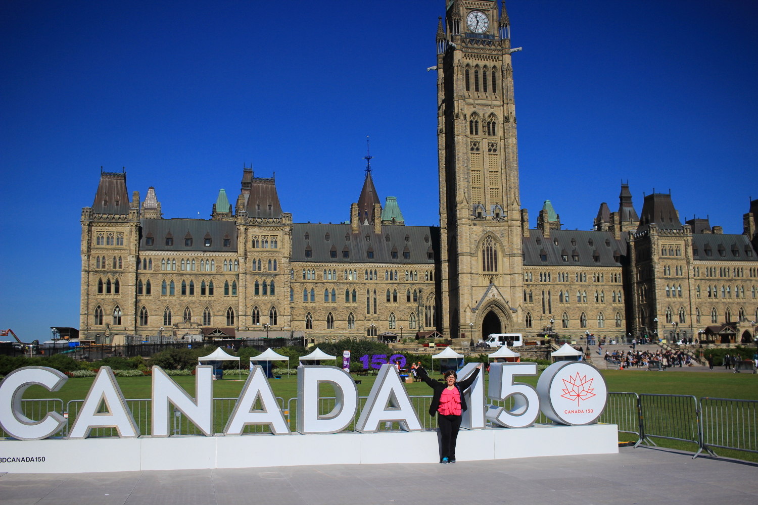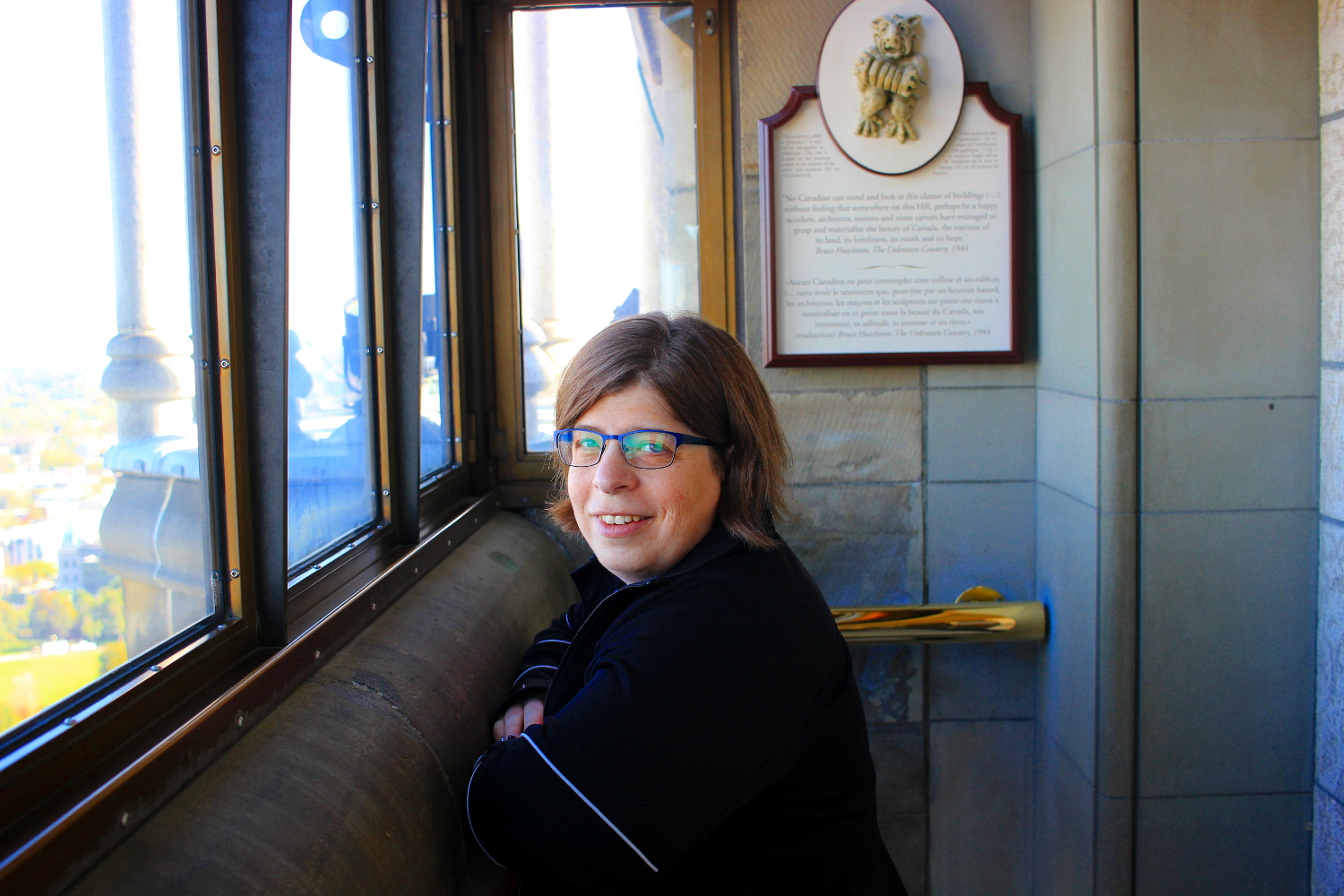 We did the 9:50 AM tour, which was shorter and less interesting than the one we took spontaneously in summer 2012. (As my uncle Marc pointed out later, though, that was before the events of 2014 — the active shooter incident on the Hill.) We chose to check out the Peace Tower too, because we missed out on it in 2012, and seriously, who wouldn’t? We got some amazing views of Ottawa from on high. (Also we stumped the page with a question about what the engraved porticullis above the door to the elevator signified. It wasn’t in his book, and the constable said he’d never even noticed it before.)