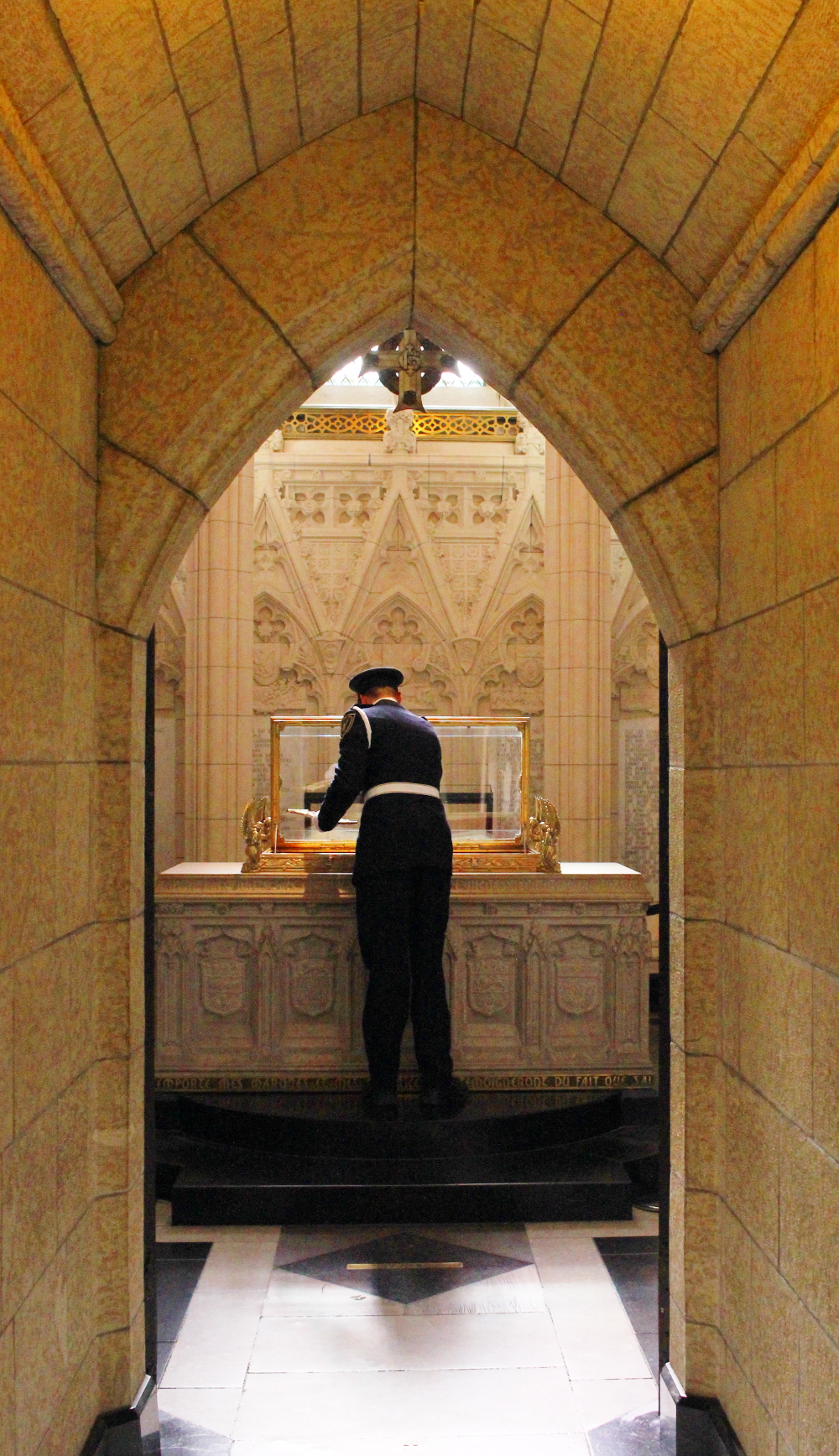 Back on the main level, we were just in time for the daily Turning of the Page ceremony in the Memorial Chapel. It was apparently the first time the constable had performed the ceremony. I thought he did very well. When the Turning of the Page was complete, we entered the Chapel, and read some of the names in each of the memorial books.
