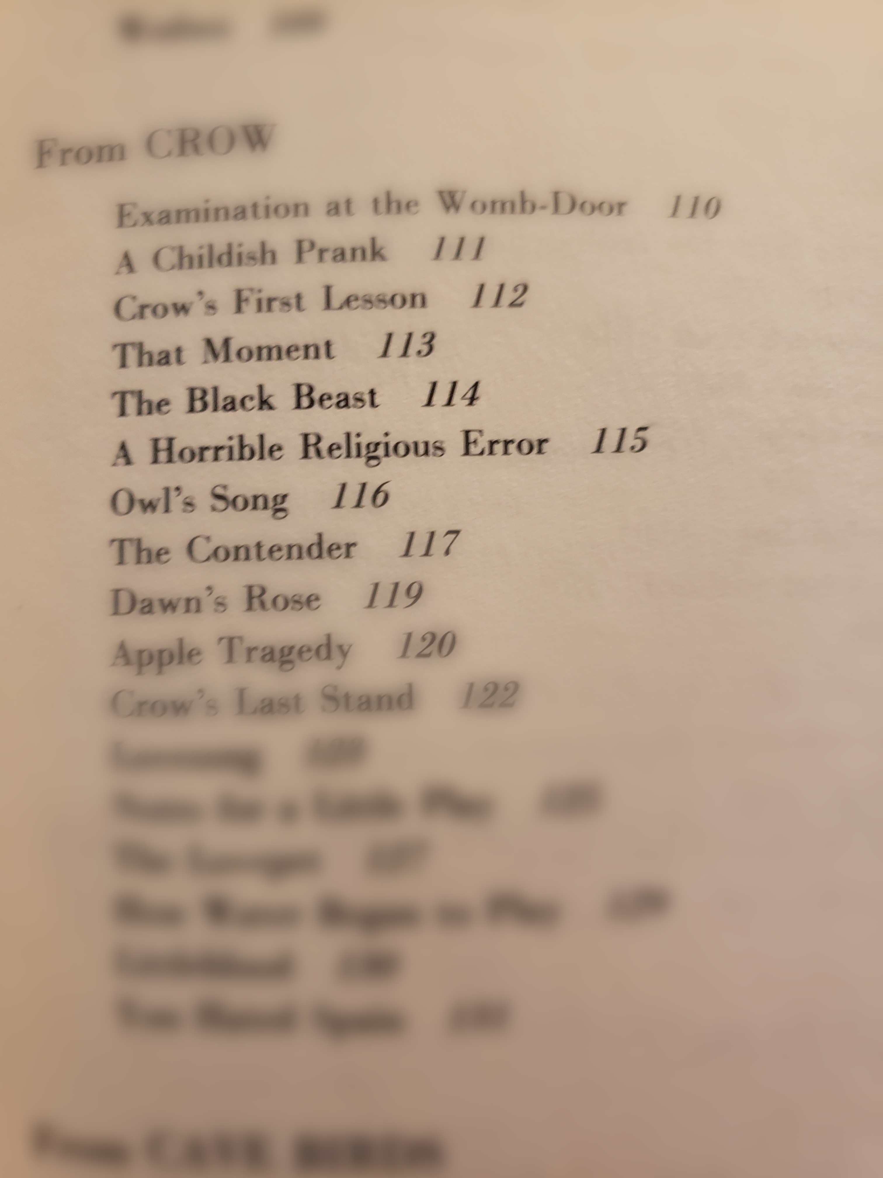 And so I checked out the library catalogue, only to find out that Crow is not the local holdings. I moved on. “Palimpsests” was eclipsed by a new, different short story project.
