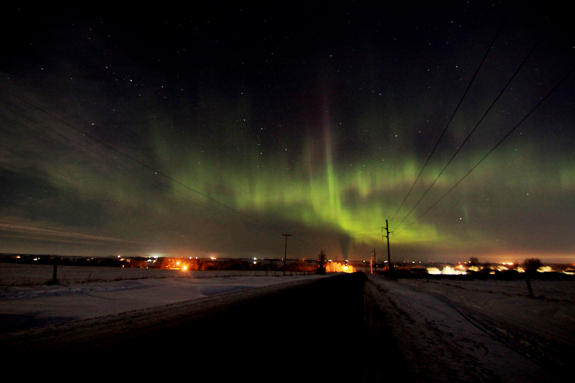 About midnight last night, after I got home from getting half an hour of chilly star trails (and charged up the batteries the cold killed), I checked the space-weather app on my phone. It told me I had a strong chance of seeing some aurora if I left like right now.