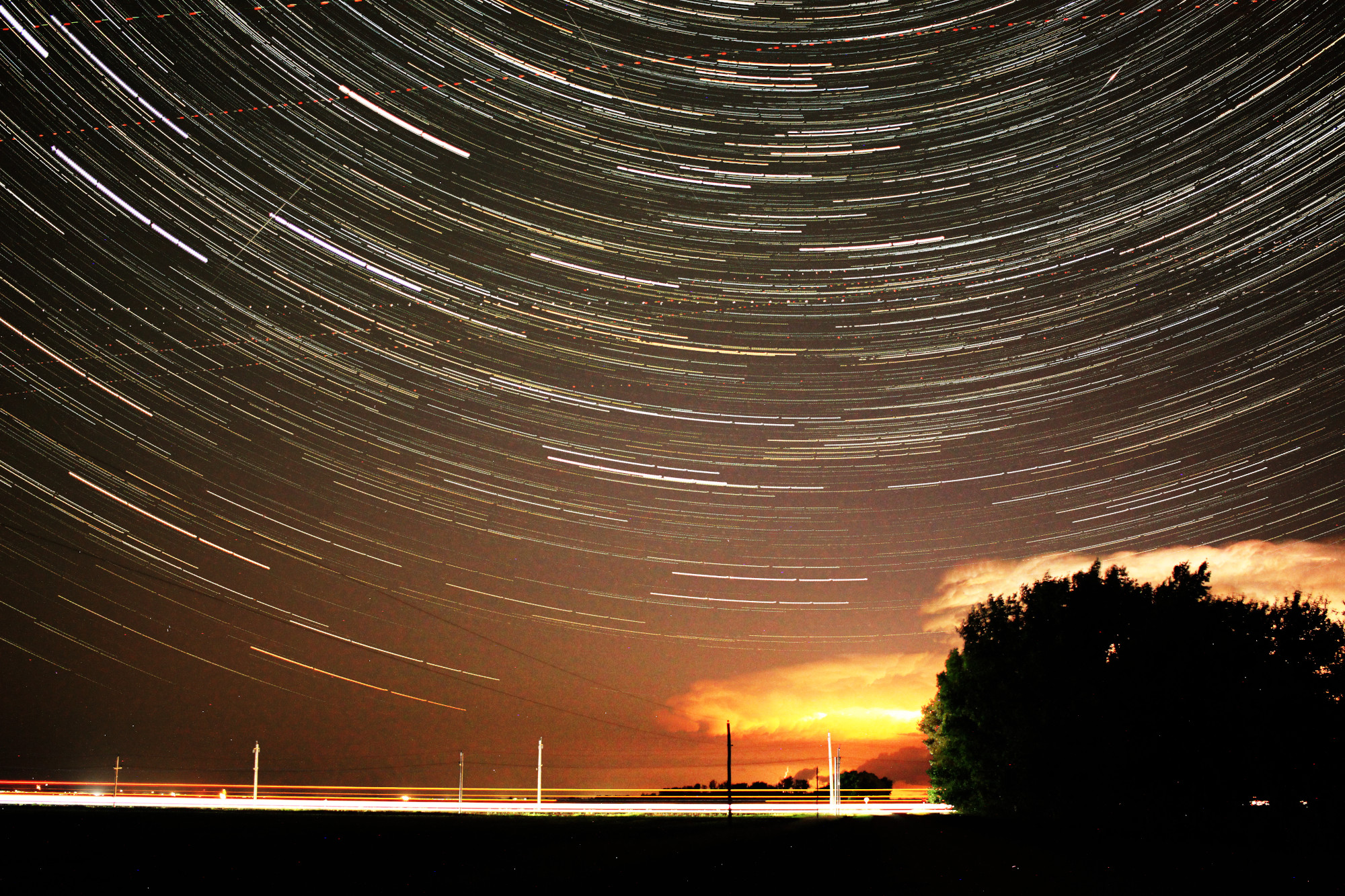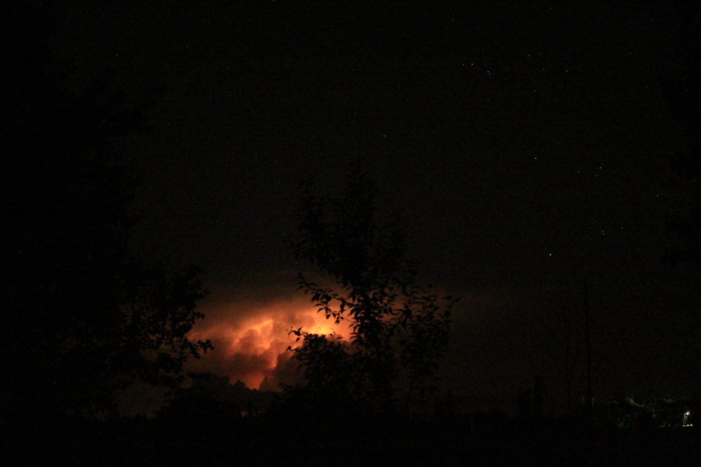 Thursday night, finally, the sky was mostly clear. There was a thunderstorm far, far off to the north; I could see the flashes, but I couldn’t hear the thunder at all.